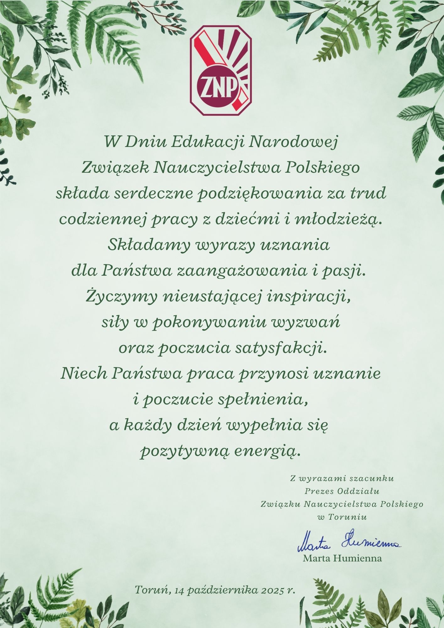 Życzenia z okazji Dnia Edukacji Narodowej 2025